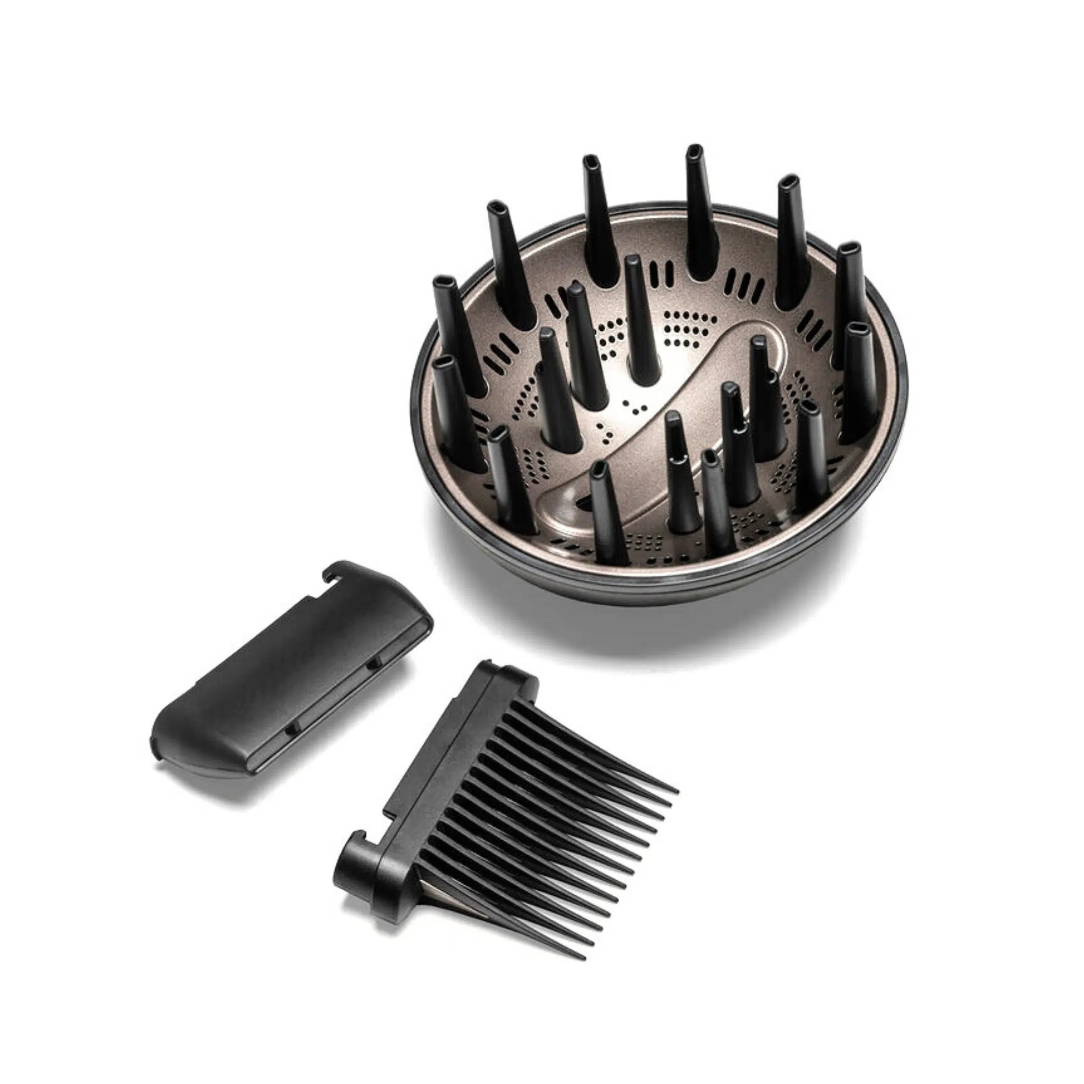 Accessoires inclus : diffuseur céramique, peigne lissant, embout concentrateur ultra-fin, support de rangement sur mesure